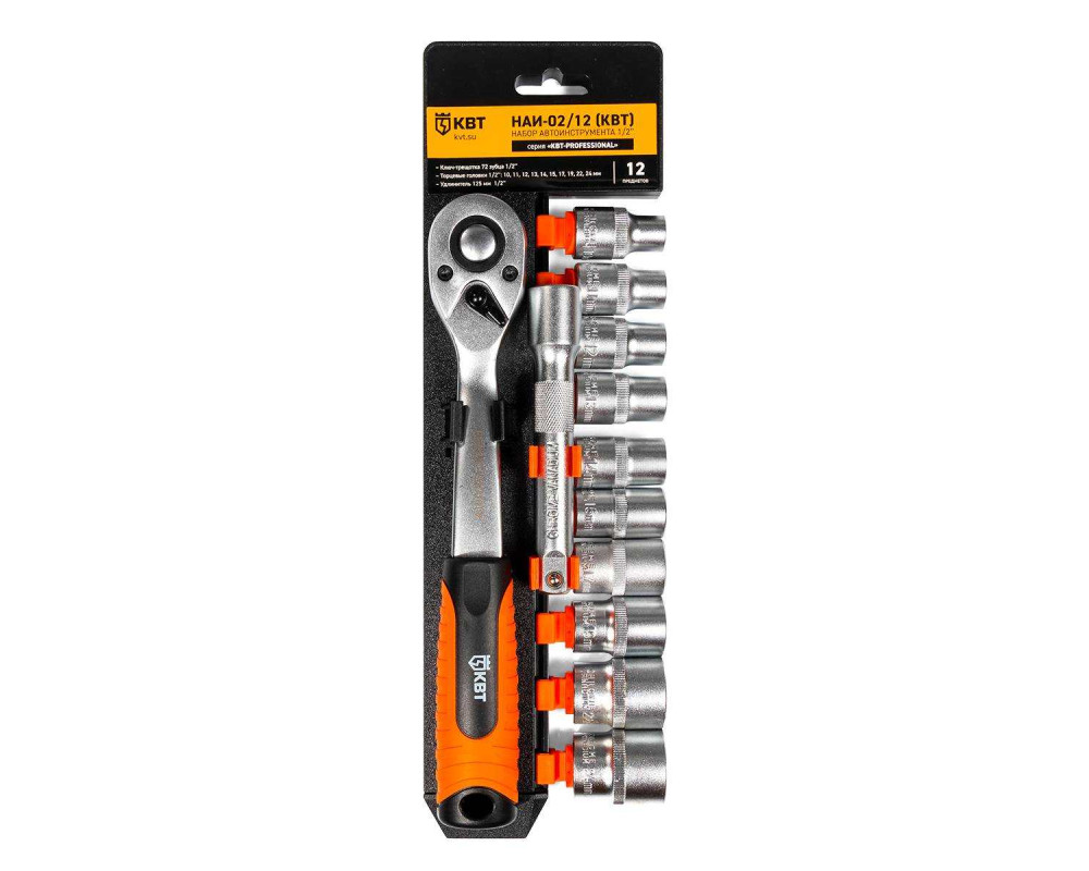НАИ-02/12 Набор автоинструмента с торцевыми шестигранными головками и трещоткой 1/2"